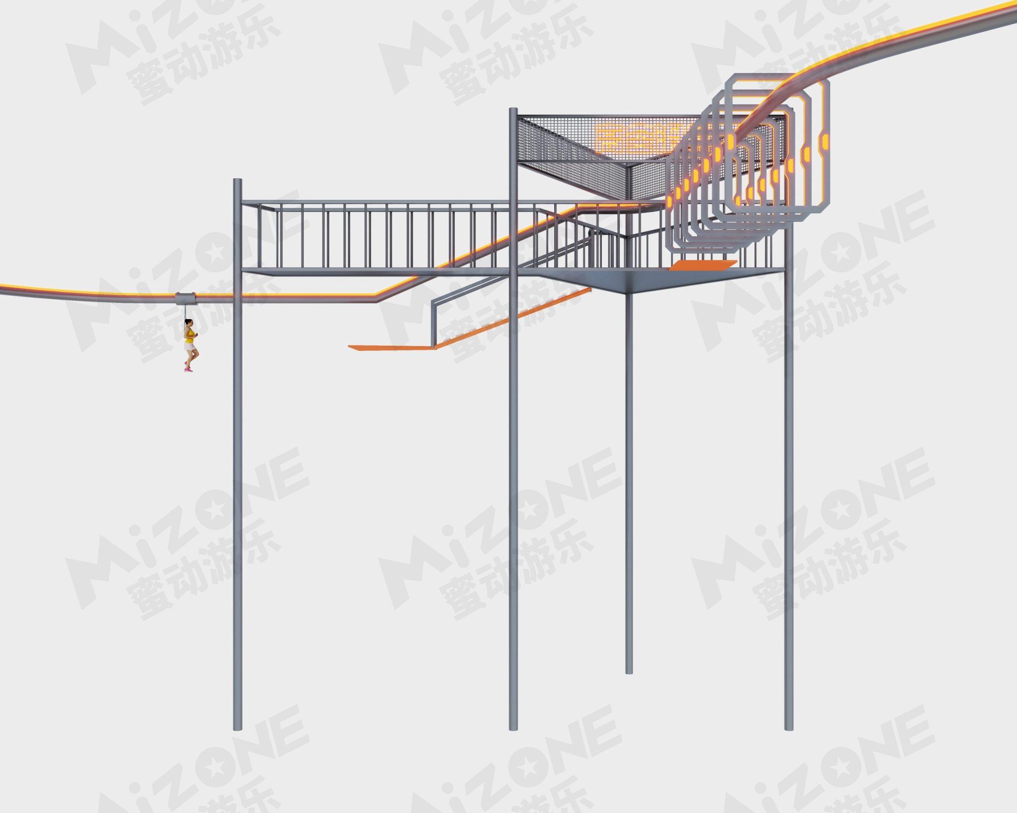 這是一款具有挑戰(zhàn)性、刺激性和娛樂性的極限游樂項目產(chǎn)品。適用多種場地,如:商場游樂館、城市運(yùn)動館、蹦床公園、叢林極限運(yùn)動探險。項目線路根據(jù)場地進(jìn)行定制化設(shè)計,尤其對于超長線路可以設(shè)置多種不同的體驗節(jié)點,如S彎、大轉(zhuǎn)彎、急轉(zhuǎn)彎、上下坡沖擊、時空隧道穿越等。