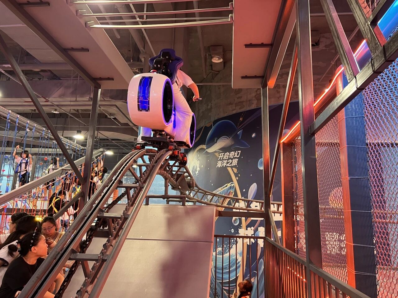 “逆戰(zhàn)風(fēng)暴潮玩運(yùn)動城”是蜜動游樂打造的全新概念潮玩運(yùn)動主題場館。 場館內(nèi)炫酷燈光營造未來感,魔方攀巖挑戰(zhàn)智勇;高空拓展云端漫步,觀景臺凌絕頂。 360自行車飛躍,光輪摩托追風(fēng),空中飛人驚艷連連。彩虹步步高挑戰(zhàn)極限,蹦床釋放活力無限。 高空秋千自由飛,旱雪滑梯速降爽,飛流直下失重狂??ǘ≤囐惖擂Z鳴,速度與激情同在。